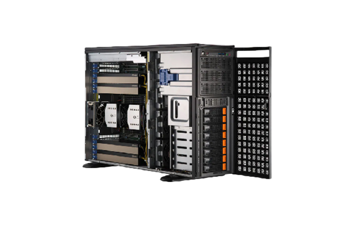 安擎 EG5420W4 是为满足对空间部署和高性能要求的高端图形工作站产品,基于英特尔®第五代/第四代可扩展处理器®设计开发,支持机塔互转,在 4U 空间中支持 4 片 计算加速卡,达到性能、扩展性和算力密度的融合。